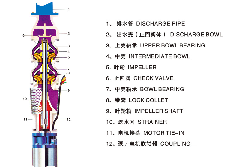 تتكون مضخات الآبار العميقة الغاطسة من سلسلة QLJ من مجموعة المحرك والمضخة ، والدعامة معقولة وسهلة التركيب والصيانة ، وبفضل الطراز الهيدروليكي المتقدم ، فإنها تعتمد على جوهر منتج برمال راتنجية وعدائين دوارة يعتمدون على التقنية الأساسية التي تغطيتها الايبوكسي ، كفاءة عالية والتي هي 2-5 ٪ أعلى من مضخة التوربينات الغاطسة نوع QJ كذلك. إنها آلة حديثة لرفع المياه.
